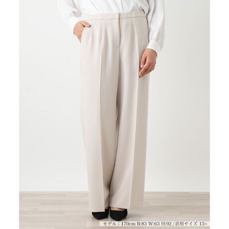 スカートのような感覚で穿ける、エレガントなシルエットのワイドパンツ。ウエストはゴム仕様で、ゆったりとしたリラックス感のある穿き心地が魅力です。動くたびにしなやかに揺れる裾が、女性らしさを引き立てます。ブラウスを合わせてきれいめに、Tシャツを合わせてカジュアルダウンにと、様々な着こなしをお楽しみいただける一枚です。