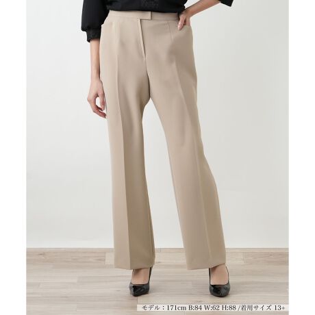 セレモニースタイルにも映える、美しいシルエットのブーツカットパンツ。ウエスト周りはすっきり見せつつ、程よい伸縮性でストレスのない快適な着心地を叶えます。落ち感のある素材とセンタープレスが縦のラインを強調し、脚を長く見せる効果が期待できます。横からの立ち姿も美しく演出する、品格ある一本です。