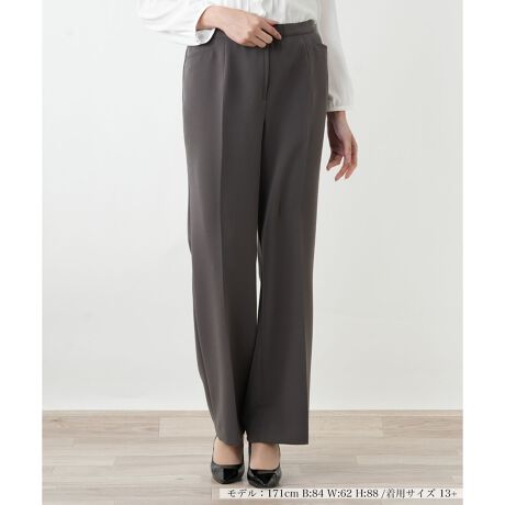 セレモニースタイルにも映える、美しいシルエットのブーツカットパンツ。ウエスト周りはすっきり見せつつ、程よい伸縮性でストレスのない快適な着心地を叶えます。落ち感のある素材とセンタープレスが縦のラインを強調し、脚を長く見せる効果が期待できます。横からの立ち姿も美しく演出する、品格ある一本です。