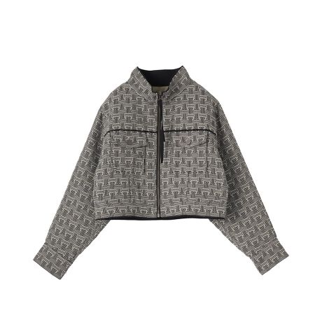 日本・桐生に伝わる風通織の技法を活かしたオリジナルジャカード素材と、ポリエステル・シルクの高密度タフタを組み合わせたリバーシブルブルゾン。太糸使いながらも高密度で織り上げた柄素材はエレガントな表情で、実用性にも配慮しています。無地素材はハリとコシに加え、絹紡糸ならではの滑らかさと上品な艶、奥行きのある表現が魅力です。