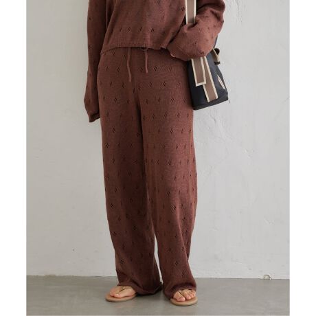 ・小さなお花のようなクロシェ柄の編地を使用した、表情のあるニットパンツ