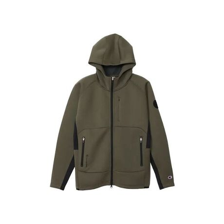 通気性、ストレッチ性、保温性に優れた三層構造で、飛べるくらい軽い!着心地の機能スウェット素材「Wrap-Air(ラップエアー)」を使用したTECH WEAVE(テックウィーブ) 3LS ジップフーデッドスウェットシャツです。表面に撥水加工を行い、裏面はメッシュ構造のドライ感と軽快感のあるポリエステル素材を採用しています。肩や腕の動きをスムーズにし、脱ぎ着もしやすい、独特な形状のラグランスリーブに加え、両脇から袖にかけてストレッチ性の高い異素材を組み合わせることで腕周りのフィット感が向上するなど、ゴルフのプレー時の快適性を高めたアイテムです。裾はシンプルな縫製手法で、アドレス時のウエスト周りのたわみを軽減。左胸と両サイドに物を落としにくいジップポケット付きです。使いやすいダブルジップ仕様で、下のジップの開閉によって通気性の調節やかがんだ時のたわみの軽減などが可能です。右サイドポケットに沿うようにChampion(チャンピオン)ロゴをプリントし、左袖にはCロゴとChampionのコンビネーションロゴのワッペンを付けています。同素材を使用したロングパンツ(C3-AG205、C3-AG206)も展開しているので、セットアップでの着用もオススメです。 サイズ/身丈 (cm)/身幅 (cm)/裄丈 (cm) M/65/52/84 L/67/55/86 XL/69/58/88 サイズはアメリカ企画サイズではなく、日本企画サイズです。 実際のサイズと若干の誤差が生じる場合がございます。 弊社では±2cmまでを許容範囲としております。 洗濯により若干の縮みがございます。 モニタなどの環境で、写真と実際の商品とは色が多少異なる場合があります。
