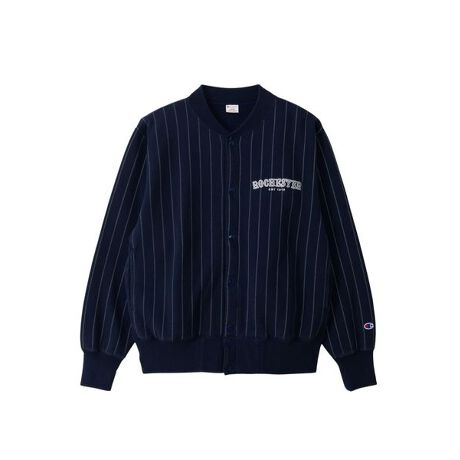 196070年代のアメリカのベースボールをファッションやデザインとして取り入れた、懐かしさとクラシックな雰囲気が特徴的な「RETRO BASEBALL(レトロ ベースボール)」をテーマとするコンセプトパッケージのラインナップ。Champion?(チャンピオン)のスウェットシャツは、「ザ キング オブ スウェットシャツ」と評されるほど、世界中の多くのファンに愛されてきました。環境に配慮して生産されたサステナブルなアメリカ綿を100%使用した、ミドルウェイトで裏起毛のスナップジャケットです。ユーズド感を持たせる加工を行い、ヴィンテージテイストを演出しています。オーセンティックなシルエットで、野球のユニフォームをイメージしたピンストライプ柄がデザインの特長。起毛の度合を少なくした「半起毛」仕様なので、シーズンを限定することなく長く着用できることもポイントです。左胸にはチャンピオンブランド誕生の地である「ROCHESTER(ロチェスター)」を「花文字」と呼ばれるクラシックな書体でデザインし、創設年の「1919」とともにプリントしています。薄手の生成りコットンを使ったクラシックな印象のネームタグは、コンセプトパッケージだけの限定バージョンです。