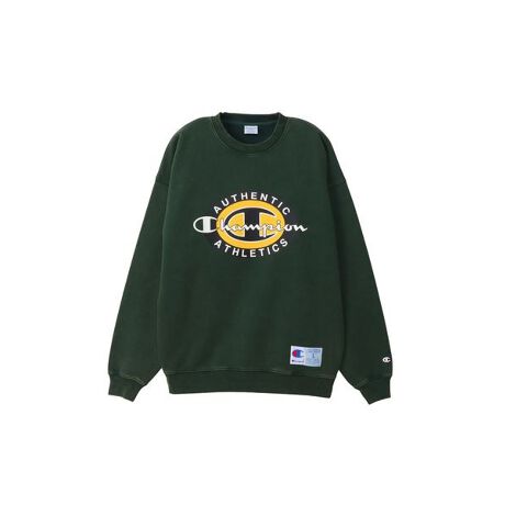 Champion?(チャンピオン)のスウェットシャツは、「ザ キング オブ スウェットシャツ」と評されるほど、世界中の多くのファンに愛されてきました。環境に配慮して生産されたサステナブルなアメリカ綿とリサイクルポリエステルを使用。表面を高密度に編み立てることで適度なハリとコシを備え、型くずれしにくく、着こむほどに肌に馴染む裏毛素材のクルーネックスウェットシャツです。大きくゆとりを持たせた身幅、肩幅、袖幅に対し、着丈をやや短めにして着用時のシルエットのバランスをとった、ACTION STYLE(アクションスタイル)独自のサイジングのルーズフィット。ユーズド感を演出する加工によって、長く愛用してきたようなムラのある色合いを出しています。胸にはCロゴとChampion?ロゴ、「AUTHENTIC ATHLETICS(オーセンティック アスレチックス)」を組み合わせてオーバル形にデザインしたグラフィックをラバープリントで入れています。袖口の立体的なCロゴ刺繍もポイントです。裾にはジョックタグ付きです。