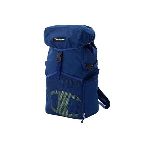 幅29cm、縦49cm、奥行き19cm、容量42リットルのバックパックです。フラップを開けたメインルーム入口周辺にドローコードを付けた巾着仕様で、中身が外に飛び出さないよう配慮しています。背面にはA4書類大のポケット付き。表面にメッシュ素材のポケットを付けているので、ちょっとした小物を入れておくのに便利です。左サイドにはメインルームへ直接アクセスできるファスナー口とボトルホルダー、右サイドにはシューズ等が入る別ルームを備えています。上部フラップにはChampion(チャンピオン)ロゴをラバープリントで入れたテープ、表面のメッシュポケットの内側にもCロゴをラバープリントで入れています。