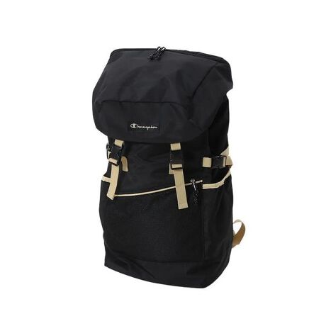 幅32cm、縦51cm、奥行き20cm、容量51リットルの大容量バックパックです。フラップ自体が別ルームになっているので、着替え、シューズなどが収納できます。ファスナー口に反射効果のあるパイピングを付け夜間での安全面に配慮しています。表面にメッシュ素材のファスナー付きポケット、左サイドにはメインルームへ直接アクセスできるファスナー口、両サイドにはボトルホルダーも備えています。上部フラップにChampion(チャンピオン)ロゴをラバープリントで入れたテープを付けています。