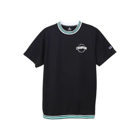 左胸にアメリカのバスケットボールシーンなどで見られるエンブレムをイメージしたグラフィックをラバープリントで入れ、襟にはラインリブ、裾にはラインテープを使用しています。