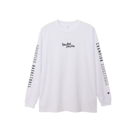 環境に配慮されたリサイクルポリエステル100%で、吸汗速乾機能、通気性などの機能を備えた素材に、汗によるニオイの発生をアクティブに抑制し続ける抗菌防臭機能「C ODORLESS? by Polygiene」加工を行った生地を使用したロングスリーブTシャツです。胸に「One Ball One Love(ワンボール ワンラブ)」を刺繍し、両袖の「CHAMPION BASKETBALL(チャンピオン バスケットボール)」はラバープリントで入れています。同様のグラフィックを使用したショーツ(C3-ZB520、C3-CB525)も展開しているので、セットアップでの着用もオススメです。