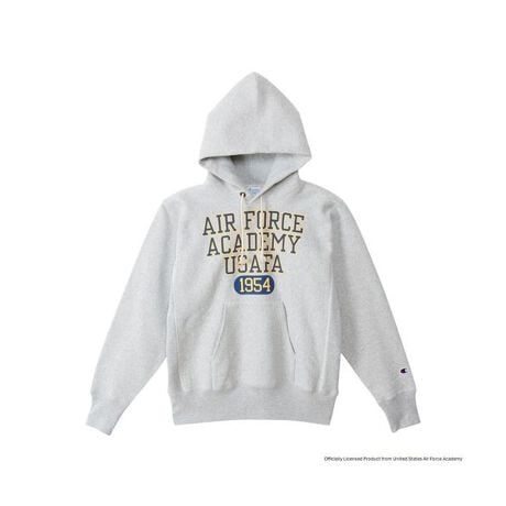 Champion?(チャンピオン)のスウェットシャツは、「ザ キング オブ スウェットシャツ」と評されるほど、世界中の多くのファンに愛されてきました。チャンピオンを代表する製法の「REVERSE WEAVE?(リバースウィーブ?)」。洗うほどにタフになり、着こむほどに独特の風合いや味が出る裏起毛素材を使用した「REVERSE WEAVE? 11.5oz. Terry Fleece(リバースウィーブ? 11.5オンス テリーフリース)」シリーズのフーデッドスウェットシャツです。コットン素材は環境に配慮して生産されたサステナブルなアメリカ綿を100%使用。本来は縦方向に使われる生地を横方向に使用する「REVERSE WEAVE?」製法によって縦の生地の縮みを防ぐと同時に、両脇に「EXPANSION GUSSET(エクスパンションガゼット)」を付けることで横の縮みへの影響を少なくし、動きやすさに配慮しています。胸のグラフィックはアメリカ合衆国の空軍士官学校(United States Air Force Academy)をモチーフにしたもので、「AIR FORCE ACADEMY(エア フォース アカデミー)」と校章を組み合わせた単色プリントと、ストレート状の3段組にレイアウトした「AIR FORCE ACADEMY」とカプセルを組み合わせた2色プリントの2種類。シルバーグレーとブラックの2色を使ったボディには染み込みプリント、シルバーグレーとネイビーの2色を使ったボディ、ダークネイビー、ブラックのボディにはラバープリントを使用しています。ネームタグは1970年代モデルの「青単タグ」(青単色タグ)を採用。アメリカの空軍士官学校は、士官候補生が正規士官として勤務するために必要な能力やリーダーシップ、知識を育成する4年制の学校。卒業生は理学士(Bachelor of Science)の学位を取得し、空軍少尉もしくは宇宙軍少尉に任官します。