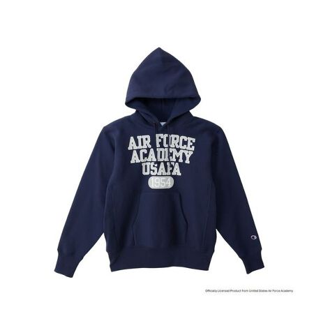 Champion?(チャンピオン)のスウェットシャツは、「ザ キング オブ スウェットシャツ」と評されるほど、世界中の多くのファンに愛されてきました。チャンピオンを代表する製法の「REVERSE WEAVE?(リバースウィーブ?)」。洗うほどにタフになり、着こむほどに独特の風合いや味が出る裏起毛素材を使用した「REVERSE WEAVE? 11.5oz. Terry Fleece(リバースウィーブ? 11.5オンス テリーフリース)」シリーズのフーデッドスウェットシャツです。コットン素材は環境に配慮して生産されたサステナブルなアメリカ綿を100%使用。本来は縦方向に使われる生地を横方向に使用する「REVERSE WEAVE?」製法によって縦の生地の縮みを防ぐと同時に、両脇に「EXPANSION GUSSET(エクスパンションガゼット)」を付けることで横の縮みへの影響を少なくし、動きやすさに配慮しています。胸のグラフィックはアメリカ合衆国の空軍士官学校(United States Air Force Academy)をモチーフにしたもので、「AIR FORCE ACADEMY(エア フォース アカデミー)」と校章を組み合わせた単色プリントと、ストレート状の3段組にレイアウトした「AIR FORCE ACADEMY」とカプセルを組み合わせた2色プリントの2種類。シルバーグレーとブラックの2色を使ったボディには染み込みプリント、シルバーグレーとネイビーの2色を使ったボディ、ダークネイビー、ブラックのボディにはラバープリントを使用しています。ネームタグは1970年代モデルの「青単タグ」(青単色タグ)を採用。アメリカの空軍士官学校は、士官候補生が正規士官として勤務するために必要な能力やリーダーシップ、知識を育成する4年制の学校。卒業生は理学士(Bachelor of Science)の学位を取得し、空軍少尉もしくは宇宙軍少尉に任官します。