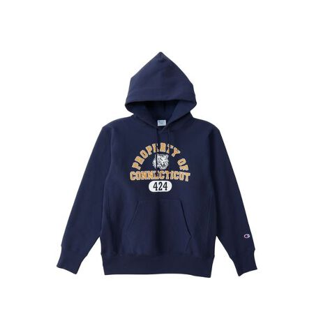 Champion?(チャンピオン)のスウェットシャツは、「ザ キング オブ スウェットシャツ」と評されるほど、世界中の多くのファンに愛されてきました。チャンピオンを代表する製法の「REVERSE WEAVE?(リバースウィーブ?)」。洗うほどにタフになり、着こむほどに独特の風合いや味が出る裏起毛素材を使用した「REVERSE WEAVE? 11.5oz. Terry Fleece(リバースウィーブ? 11.5オンス テリーフリース)」シリーズのフーデッドスウェットシャツです。コットン素材は環境に配慮して生産されたサステナブルなアメリカ綿を100%使用。本来は縦方向に使われる生地を横方向に使用する「REVERSE WEAVE?」製法によって縦の生地の縮みを防ぐと同時に、両脇に「EXPANSION GUSSET(エクスパンションガゼット)」を付けることで横の縮みへの影響を少なくし、動きやすさに配慮しています。身幅にゆとりを持たせたリラックスフィット。胸のプリントはチャンピオンブランドと親和性の高いカレッジ風グラフィックを現代に落とし込んだもので、2段に組んだ文字と大きなアルファベットを組み合わせたデザイン、ストレート状の文字を2段に組んだデザイン、文字とマスコット、カプセルナンバーを組み合わせたデザインの3タイプ(6種類)。シルバーグレー、オートミールのボディには染み込みプリント、ブラック、バーガンディー、ダークネイビーおよびダークグリーンのボディにはラバープリントを使用しています。ネームタグは1970年代モデルの「青単タグ」(青単色タグ)を採用。