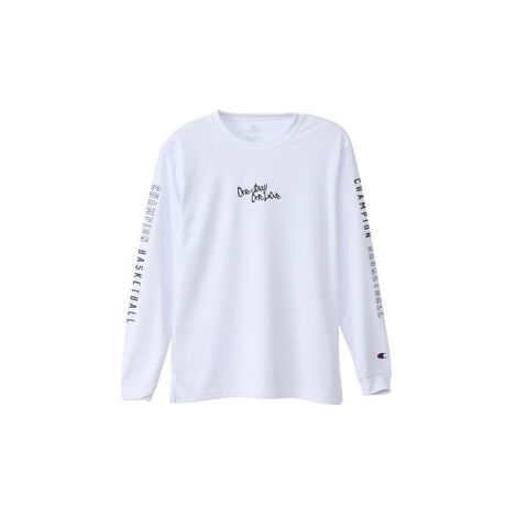 環境に配慮されたリサイクルポリエステル100%で、吸汗速乾機能、通気性などの機能を備えた素材に、汗によるニオイの発生をアクティブに抑制し続ける抗菌防臭機能「C ODORLESS? by Polygiene」加工を行った生地を使用したジュニアロングスリーブTシャツです。胸には「One Ball One Love(ワンボール ワンラブ)」を、両袖には「CHAMPION BASKETBALL(チャンピオン バスケットボール)」をラバープリントで入れています。同様のグラフィックを使用したショーツ(CK-ZB524)も展開しているので、セットアップでの着用もオススメです。