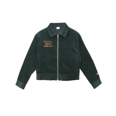 表地は柔らかい肌触りの細畝(ほそうね)コーデュロイ素材を使用したジップジャケットです。裏地のダイヤモンドキルト生地は、身頃に60g、袖に40gの軽量で保温性、通気性、耐水性を兼ね備えた中綿を入れています。アメリカで1928年に設立された「学校農業クラブ連盟(Future Farmers of America)」のユニフォームとして生まれ、後のアメリカの文化とファッションに深く浸透した「FFAジャケット」をデザインモチーフとしています。右胸に入れた筆記体の「Champion Authentic American Athleticwear(チャンピオン オーセンティック アメリカン アスレチックウェア)」は細目のチェーン刺繍で、背中の「NEW YORK ROCHESTER(ニューヨーク ロチェスター)」は太目のチェーン刺繍。さらに背中の刺繍の下に、FFAのシンボルマークをイメージしたオリジナルデザインのワッペンを付けています。身幅にゆとりを持たせたサイズ感で、収納に便利なサイドポケット付き。同素材を使用したスカート(CW-C207)も展開しているので、セットアップでの着用もオススメです。