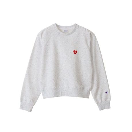 Champion?(チャンピオン)のスウェットシャツは、「ザ キング オブ スウェットシャツ」と評されるほど、世界中の多くのファンに愛されてきました。表面は環境に配慮して生産されたサステナブルなアメリカ綿、裏面はアメリカ綿とリサイクルポリエステルの混紡糸を使用した、ライトウェイトで裏毛のロングスリーブラグランスウェットシャツです。身幅にゆとりを持たせたリラックスフィット。糸の繊維が絡み合ってできた節(かたまりのような部分)を多く持つ「ネップ糸」と呼ばれる糸を使用することで生まれる、生地表面のカラフルで不規則なドット模様が特長です。左胸には、鮮やかな色のハートマークにCロゴを入れた特徴的なグラフィックのフロッキープリント入り。製品洗い加工による肌馴染みの良い快適な風合いと、洗濯後の縮みにくさもポイントです。同素材を使用したスウェットスカート(CW-C201)も展開しているので、セットアップでの着用もオススメです。
