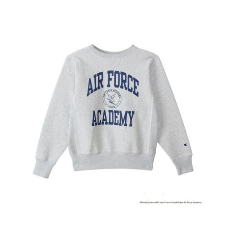 Champion?(チャンピオン)のスウェットシャツは、「ザ キング オブ スウェットシャツ」と評されるほど、世界中の多くのファンに愛されてきました。チャンピオンを代表する製法の「REVERSE WEAVE?(リバースウィーブ?)」。洗うほどにタフになり、着こむほどに独特の風合いや味が出る裏起毛素材を使用した「REVERSE WEAVE? 11.5oz. Terry Fleece(リバースウィーブ? 11.5オンス テリーフリース)」シリーズのクルーネックスウェットシャツです。コットン素材は環境に配慮して生産されたサステナブルなアメリカ綿を100%使用。本来は縦方向に使われる生地を横方向に使用する「REVERSE WEAVE?」製法によって縦の生地の縮みを防ぐと同時に、両脇に「EXPANSION GUSSET(エクスパンションガゼット)」を付けることで横の縮みへの影響を少なくし、動きやすさに配慮しています。胸のグラフィックはアメリカ合衆国の空軍士官学校(United States Air Force Academy)をモチーフにしたもので、「AIR FORCE ACADEMY(エア フォース アカデミー)」と校章を組み合わせた単色プリントと、2色で「USAFA ATHLETICS(USAFA アスレチックス)」を2段にレイアウトした2色プリントの2種類。シルバーグレーのボディには染み込みプリントとラバープリント、ダークネイビーおよびブラックのボディにはラバープリントを使用しています。ネームタグは1970年代モデルの「青単タグ」(青単色タグ)を採用。アメリカの空軍士官学校は、士官候補生が正規士官として勤務するために必要な能力やリーダーシップ、知識を育成する4年制の学校。卒業生は理学士(Bachelor of Science)の学位を取得し、空軍少尉もしくは宇宙軍少尉に任官します。