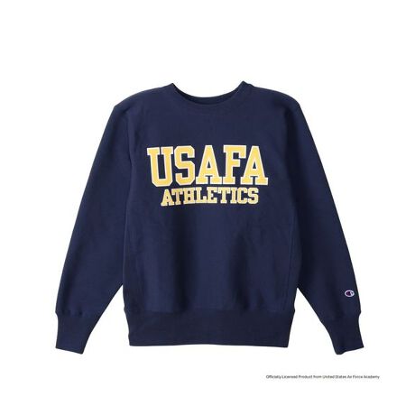 Champion?(チャンピオン)のスウェットシャツは、「ザ キング オブ スウェットシャツ」と評されるほど、世界中の多くのファンに愛されてきました。チャンピオンを代表する製法の「REVERSE WEAVE?(リバースウィーブ?)」。洗うほどにタフになり、着こむほどに独特の風合いや味が出る裏起毛素材を使用した「REVERSE WEAVE? 11.5oz. Terry Fleece(リバースウィーブ? 11.5オンス テリーフリース)」シリーズのクルーネックスウェットシャツです。コットン素材は環境に配慮して生産されたサステナブルなアメリカ綿を100%使用。本来は縦方向に使われる生地を横方向に使用する「REVERSE WEAVE?」製法によって縦の生地の縮みを防ぐと同時に、両脇に「EXPANSION GUSSET(エクスパンションガゼット)」を付けることで横の縮みへの影響を少なくし、動きやすさに配慮しています。胸のグラフィックはアメリカ合衆国の空軍士官学校(United States Air Force Academy)をモチーフにしたもので、「AIR FORCE ACADEMY(エア フォース アカデミー)」と校章を組み合わせた単色プリントと、2色で「USAFA ATHLETICS(USAFA アスレチックス)」を2段にレイアウトした2色プリントの2種類。シルバーグレーのボディには染み込みプリントとラバープリント、ダークネイビーおよびブラックのボディにはラバープリントを使用しています。ネームタグは1970年代モデルの「青単タグ」(青単色タグ)を採用。アメリカの空軍士官学校は、士官候補生が正規士官として勤務するために必要な能力やリーダーシップ、知識を育成する4年制の学校。卒業生は理学士(Bachelor of Science)の学位を取得し、空軍少尉もしくは宇宙軍少尉に任官します。