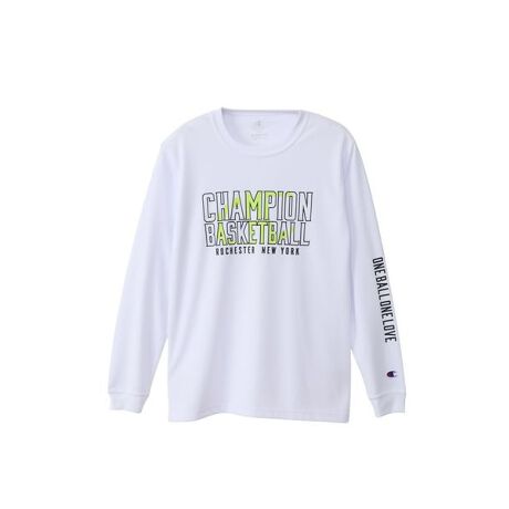 環境に配慮されたリサイクルポリエステル100%で、吸汗速乾機能、通気性などの機能を備えた素材に、汗によるニオイの発生をアクティブに抑制し続ける抗菌防臭機能「C ODORLESS? by Polygiene」加工を行った生地を使用したジュニアロングスリーブTシャツです。胸には「CHAMPION BASKETBALL(チャンピオン バスケットボール)」、「ROCHESTER NEW YORK(ロチェスター ニューヨーク)」とCロゴを組み合わせたグラフィックを、左袖には「ONE BALL ONE LOVE(ワンボール ワンラブ)」をラバープリントで入れています。コーディネートしやすいショーツ(CK-ZB524、CK-CB525)も展開しているので、セットアップでの着用もオススメです。