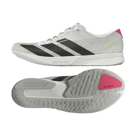 スピード。熱意。パフォーマンス。adidasのアディゼロ RC 6ランニングシューズは、軽量で高い透湿性のフィーリングと、しっかりとしたフィット感によるパフォーマンスを両立。戦略的に補強されたLightstrikeミッドソールクッショニングが、滑らかで高反発な走り心地を実現。Lighttraxionのアウトソールには、つま先にContinentalTMラバーを追加してグリップ力と耐久性を高めている。