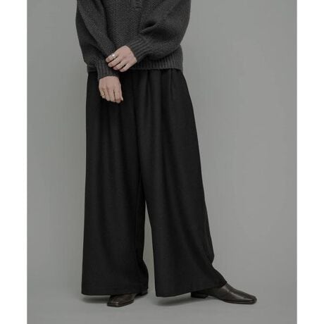 カジュアルなスウェットや綺麗めなニットトップスにも合わせやすい素材感で、オンオフ兼用でスタイリングを楽しめます。