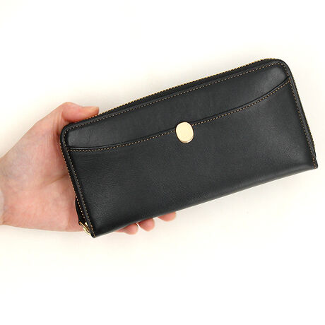 すっきり見えるラウンドの束入はカードが22枚入リます。見た目以上の収納力。