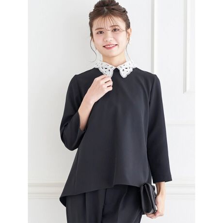さらりとしたダブルクロス生地で仕立てられたレース襟ブラウス。