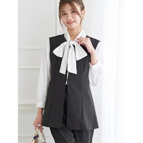 裾に向かってなだらかに広がるペプラムシルエットがフェミニンな印象を与えるベスト。