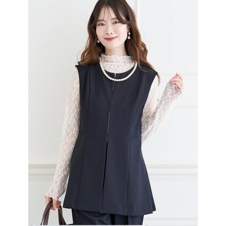 裾に向かってなだらかに広がるペプラムシルエットがフェミニンな印象を与えるベスト。