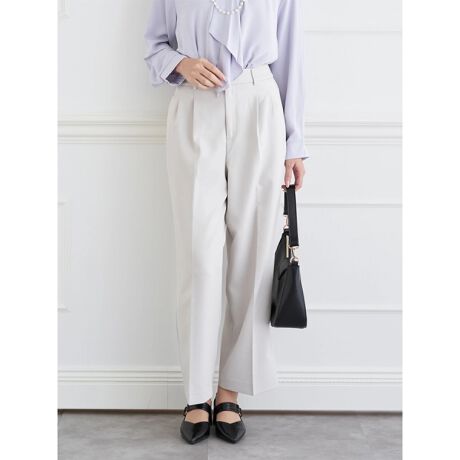 すとんとしたワイドシルエットのデザインが美しい脚のラインを描くパンツ。