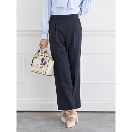 すとんとしたストレートシルエットが美しい脚のラインを演出するパンツ。