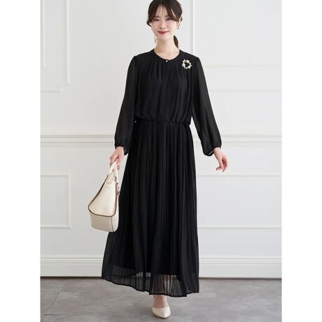[型番:25580039364]裾のプリーツ切り替えが洗練された女性らしさを演出するワンピース。さらりとしたシフォンジョーゼット素材が快適な着心地を実現します。スキッパーネックとクルーネックの2通りで楽しめるのも魅力。1枚で着用したり、ジャケットと組み合わせたコーディネートがおすすめです。モデル(紺着用)身長:167cmMサイズ着用モデル(黒着用)身長:160cmMサイズ着用