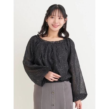 ラメ入りの花柄刺繍が施された程よいハリ感のあるシアー素材