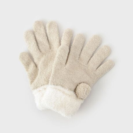 手首部分にかわいいボンボンが付いた手袋。