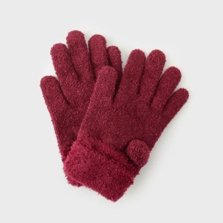 手首部分にかわいいボンボンが付いた手袋。