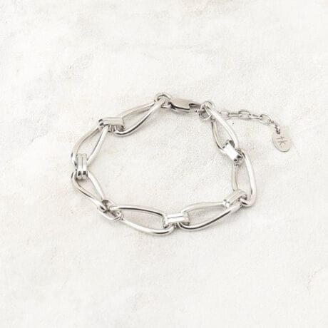 手元にエッジの効いたアクセントを加える、デザイン性の高いチェーンブレスレット。