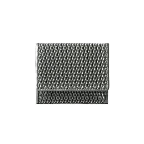 クロム鞣しの牛革にメタリック塗装をし、ダイヤ形の深い型押しを施しています。
