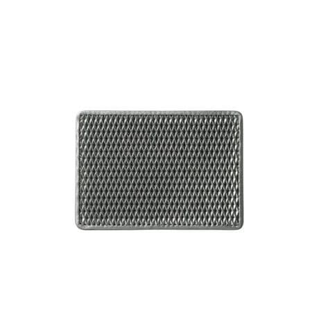 クロム鞣しの牛革にメタリック塗装をし、ダイヤ形の深い型押しを施しています。