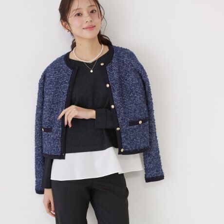 またカーディガン・ジャケットと合わせたレイヤードの着こなしがおすすめ。