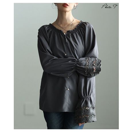 袖口にあしらったレースがさりげなく映えるブラウス。前後2wayで着られるので、その日の気分で印象チェンジも楽しめます。ワンピースやトップスに重ねて、レースをちらっと覗かせるレイヤードコーデもおすすめです♪