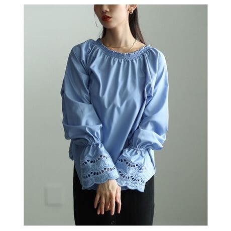 袖口にあしらったレースがさりげなく映えるブラウス。前後2wayで着られるので、その日の気分で印象チェンジも楽しめます。ワンピースやトップスに重ねて、レースをちらっと覗かせるレイヤードコーデもおすすめです♪