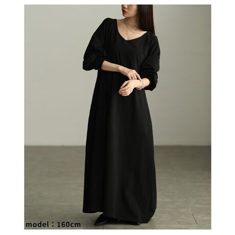マルイウェブチャネル   /   サワアラモード   /   ワンピースドレス   /   ワンピース   /   【ワンピース】 ブラック 黒 ネイビー 紺 チャコール ロング 長袖 パフスリーブ フレア コットン