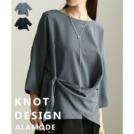 フロントのノットデザインが、シンプルなトップスにさりげない表情をプラス。さらっとした手触りで着心地もよく、季節を問わずロングシーズン活躍してくれます。いつものコーデにちょうどいいアクセントになる一枚です♪