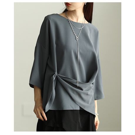 【カットソー】 トップス プルオーバー ブラック 黒 グレー 7分袖 アシンメトリー 無地 冬服 春