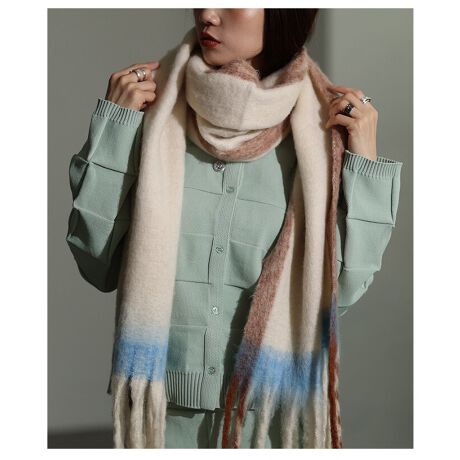 MIXカラーの表情が楽しいフリンジストール。やさしい色合いが顔まわりをぱっと明るく見せ、コーデに自然な華やぎを添えてくれます。柔らかな肌触りで首元を包み込み、寒さ対策にも頼れる一枚です♪