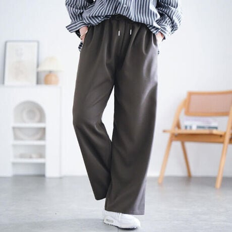 大人の抜け感漂う綺麗めシルエットのワイドパンツの登場です!程よいワイド感とすっきりラインの絶妙バランスでヘビロテ間違いなし☆調節紐付き総ゴム&深めの股上でストレスフリーな穿き心地◎トップスを選ばず着こなせるシンプルデザインで旬スタイルが楽しめます♪穿くだけでこなれ感の効いたワンランク上のコーデに!幅広い年齢の方にもオススメのパンツです☆