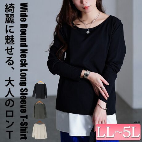 マルイウェブチャネル   /   ゴールドジャパン   /   トップス   /   Tシャツ・カットソー   /   【大きいサイズ】 ワイドラウンドネックロンT 大きいサイズ レディース トップス カットソー 長袖
