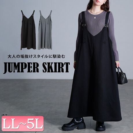 【大きいサイズ】 肩ベルトフレアジャンパースカート 大きいサイズ レディース ワンピース ロング 冬