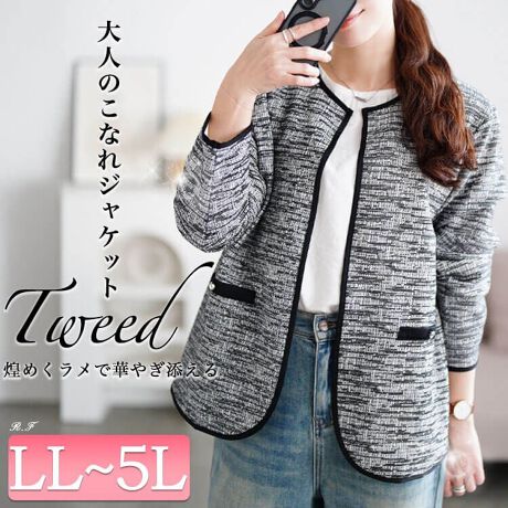 マルイウェブチャネル   /   ゴールドジャパン   /   アウター・ジャケット・コート   /   ノーカラージャケット   /   【大きいサイズ】 配色パイピングラメツイードジャケット 大きいサイズ レディース アウター 長袖 冬