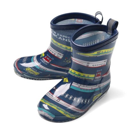 入園・入学準備品!通園、通学、遠足や普段のおでかけなどにも!男の子が大好きな電車、新幹線柄!毎シーズン大人気のJRコラボシリーズです!JR東日本、JR西日本商品化許諾済み商品です。はやぶさ、こまち、ドクターイエローの総柄レインシューズ、長靴。軽くて柔らかいインジェクション素材。かかとの引手は着脱や乾かす時に便利です。同じ柄でレインコート(B17892)、かさ、傘(B17893)の作りもあるので、全てお揃いにするのもオススメ。インソールとお名前シール付き!【アイテム】雑貨 カジュアル お洒落 オシャレ かっこいい かわいい 可愛い 普段着 デイリーウェア お出かけ 子ども こども 男児 男の子 ボーイズ キッズ ベビーサイズ トドラーサイズ 幼稚園 保育園 小学校 通園 通学 小学生 遠足 旅行 2026年春物新作 丸高衣料 小物 鉄道 子鉄 ハングリーハート キッズフォーレ エメラルドグリーン 緑色 ネイビー 紺色 レイングッズ 雨具