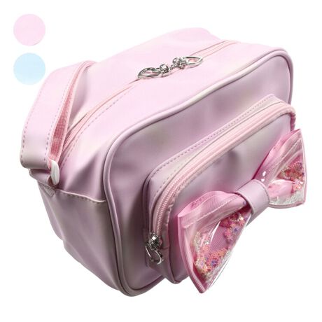 入園・入学準備品!ショルダータイプの通園バッグ・幼稚園バック。ビニールのリボンにはキラキラのスパンコールやビーズが入っており、トレンド感のある通園バックです。内側にもポケットがあります。【アイテム】 雑貨 カジュアル お洒落 オシャレ かわいい 可愛い 普段着 デイリーウェア お出かけ 子ども こども 女児 女の子 ガールズ キッズ ベビーサイズ トドラーサイズ 幼稚園 保育園 小学校 通園 通学 小学生 遠足 旅行 2026年春夏物新作 丸高衣料 小物 入園入学準備品 ピンク ブルー 青色 水色 りぼん キッズフォーレ