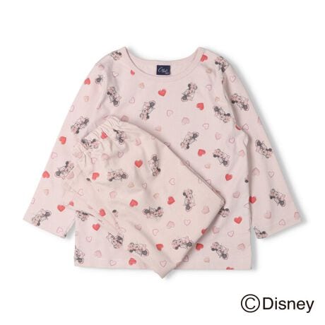 【Disney】人気のディズニーデザインアイテム。ミニーマウスとハートの総柄プリントが可愛い!天竺素材、Tシャツ素材の長袖Tシャツとパンツのパジャマ、ルームウェア。(80、90cmのみお腹が出にくい脇ボタン付き仕様です。)綿100%でギフトやプレゼントにもオススメ!【アイテム】トップス ボトムス カジュアル お洒落 オシャレ かわいい 可愛い ガーリー フェミニン 普段着 デイリーウェア 長袖 ロングスリーブ トップス ロング丈 長丈 長ズボン フル丈 ロングパンツ ボトムス 寝巻 ルームウェア 子ども こども 女児 女の子 ボーイズ キッズ ベビーサイズ トドラーサイズ 幼稚園 保育園 小学校 小学生 2026年春夏物新作 丸高衣料 贈り物 ギフト プレゼント 帰省 お泊り会 旅行 キャラクター オフホワイト 白色 ピンク コットン100% 綿100%